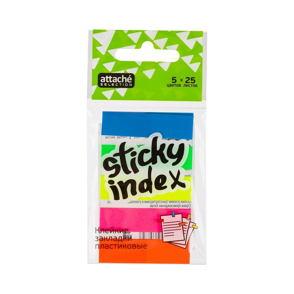 Закладки пластиковые ATTACHE Выбор, 12x45 мм, 125 листов, 5 цветов