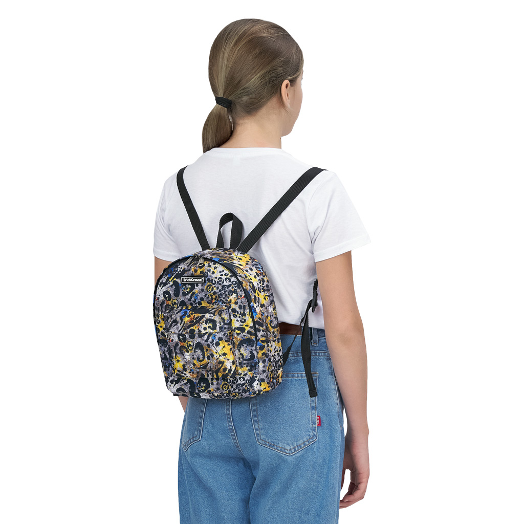 Эта модель мини-рюкзака для молодёжной аудитории исполнена в размере 25x22x11 см, её объём 6 л. Рюкзак изготовлен из износо- и морозостойкого водоотталкивающего 100% полиэстера 600D. Внутри имеется практичное вместительное отделение. Кроме того, у рюкзака имеется внешний карман на молнии для мелкой канцелярии или аксессуаров. Длинные лямки рюкзака выполнены из прочной стропы. Места крепления лямок и ручки усилены дополнительными швами для прочности. Надёжные молнии с мягким ходом оснащены бегунками с логотипом ErichKrause. Креативные принты этой модели удовлетворят самого взыскательного тинэйджера!| Цвет | многоцветный |